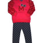 -Red Initial Sweatshirt & Navy Polka Dot Leggings