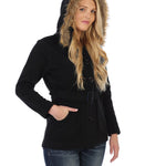unik Women Fleece Coat with Fur Hood and Detachable Belt-Black