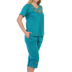 Women's Short Sleeve Embroidered Blouse and Matching Capri Set - 10